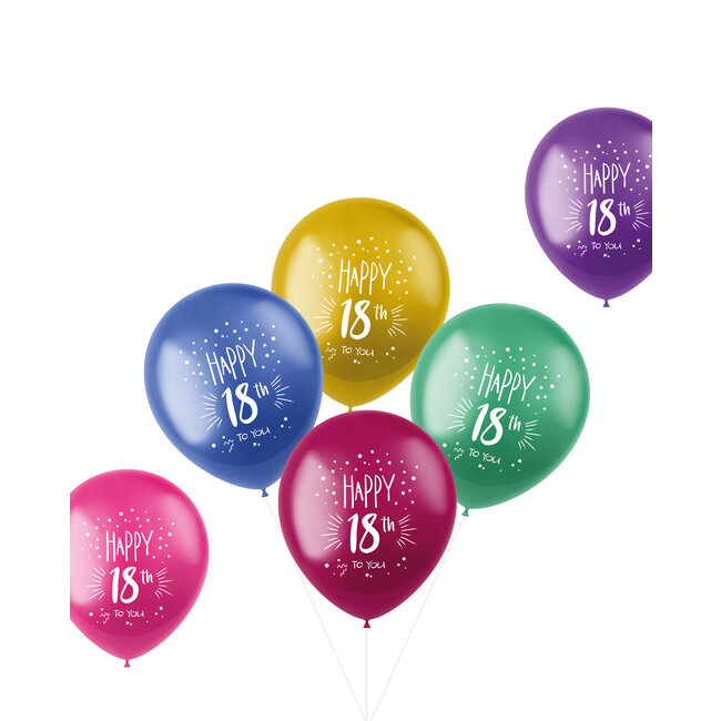 Ballonnen Shimmer 18 Jaar Meerkleurig 33cm - 6 stuks. Inhoud: 6 latex ballonnen. Kleur: Meerkleurig. Bijvoorbeeld te gebruiken tijdens de volgende feestgelegenheid/feestgelegenheden: Verjaardag. Elke ballon is 13 inch/33 cm. Het artikel is gemaakt van latex.