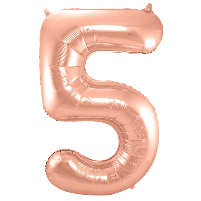 Rosé Goudkleurige Cijferballon cijfer 5 - 86cm. Inhoud: 1 folieballon. Kleur: Roségoud. Bijvoorbeeld te gebruiken tijdens de volgende feestgelegenheid/feestgelegenheden: Verjaardag, Jubileum en Kinderfeestje. Deze folieballon is 34 inch/86 cm. Het artikel is gemaakt van folie.