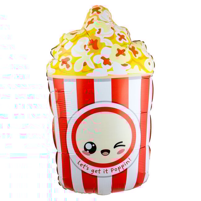 Maak elk feestje zoet, luchtig en supercute met deze folieballon in popcornvorm! Deze vrolijke ballon toont een schattig popcornbakje met een grappig gezichtje en de tekst "Let's go Poppin!", perfect om de feeststemming meteen te laten zien. Met een afmeting van 37x60 cm kan de ballon gevuld worden met helium of lucht en dankzij de hangtab(s) eenvoudig worden opgehangen. Ideaal voor verjaardagen, kinderfeestjes of themafeesten, en een geweldige aanvulling op de Kawaii Party collectie. Gemaakt van stevig folie, zodat hij langdurig mooi blijft.