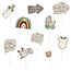 Leuk voor op de foto. Photobooth Set - Blooming Baby Little One - 10 stuks. Inhoud: 10 photobooth props, stokjes en tape. Bijvoorbeeld te gebruiken tijdens de volgende feestgelegenheid/feestgelegenheden: Babyshower, Verjaardag, Geboorte. Deze photobooth props zorgen zeker voor leuke foto's. Leuk voor op babyshowers en gender reveal feestjes. Er zijn 10 props: flesje, regenboog, kinderwagen, ooievaar, speen, romper, een pijl met "Mommy to Be!", een wolk met "Let me out" en een tekstballon met "Little One". Met glinsterende gouden details. Er zitten 10 stokjes bij die met het bijgesloten dubbelzijdige tape aan de props bevestigd kunnen worden. Deze photobooth props horen bij onze Blooming Baby Little One collectie. Dit artikel is gemaakt van FSC papier.