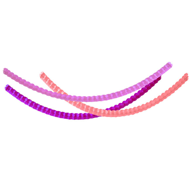 Slingers Pastel Roze 3m - 3 stuks. Inhoud: 3 slingers. Kleur: Roze. Bijvoorbeeld te gebruiken tijdens de volgende feestgelegenheid/feestgelegenheden: Verjaardag, Kinderfeestje en Geboorte Meisje. Deze slinger is 3 meter lang. Het artikel is gemaakt van papier.